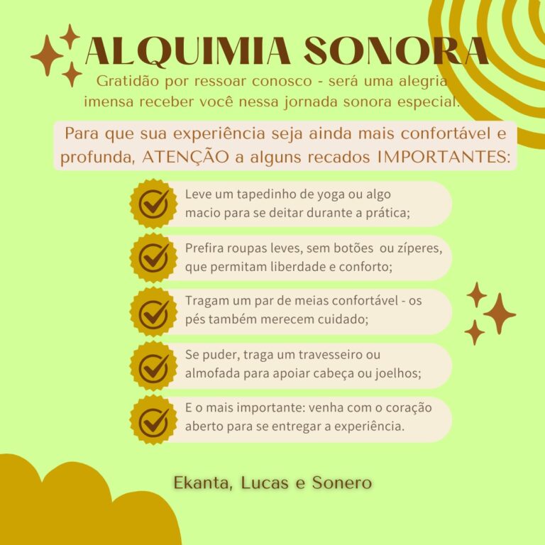 “Alquimia Sonora” é uma experiência de imersão e audição guiada, criada e conduzida por Ekanta Jake. Diferente de uma performance de DJ, a “Alquimia Sonora” propõe um espaço para silenciar o mundo exterior e focar na audição interna, usando o som como ferramenta de introspecção.