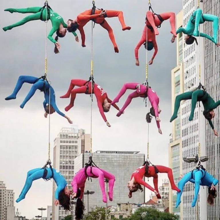 Buscando a fluidez, leveza como ponto primordial para as coreografias aéreas criadas, a performance da premiada Cia Base se conecta com a arquitetura, a paisagem, as perspectivas e os acontecimentos do local, enfatizando seu valor cultural, artístico e histórico, possibilitando novos olhares e interpretações para a mulher no espaço e na cidade.