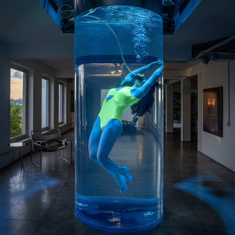 Meditação em grupo guiada com foco em breathwork, acompanhada por pessoa flutuando dentro de um Acquabox, um aquário humano que potencializa os efeitos mentais e corporais das práticas meditativas. A sessão contará com cromoterapia e fundo sonoro em frequências que ativam diversos chakras.