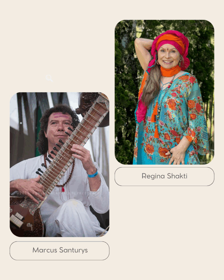 Santurys vai tocar o Sitar indiano na abertura do evento em parceria com Regina Shakti e depois na tenda da Natural Vibe, tocando mantras e música indiana.