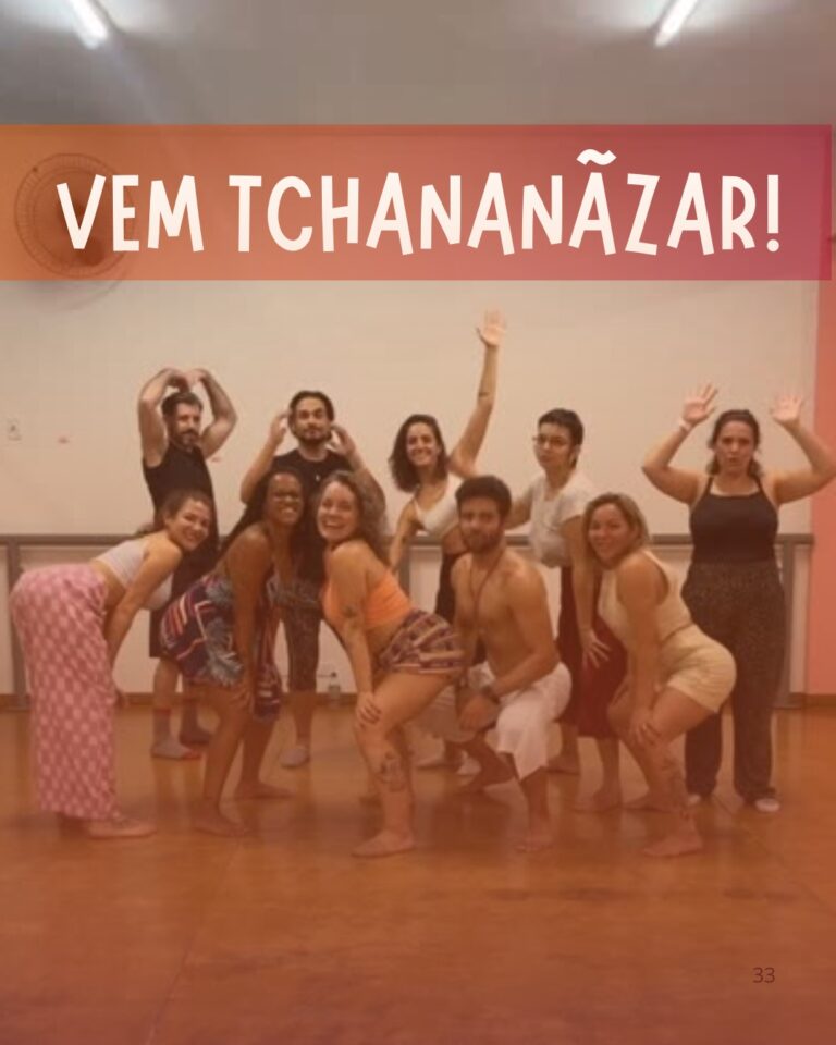 O TCHANANÃ é uma vivência dançante para entrar em contato com nosso corpo, nosso movimento, nossas potências e singularidades para perceber que somos pessoas incríveis e únicas! Para ir para um lugar de autoconfiança, autoestima e brilho pessoal através do mover e do conhecimento sobre nosso próprio TCHANANÃ.