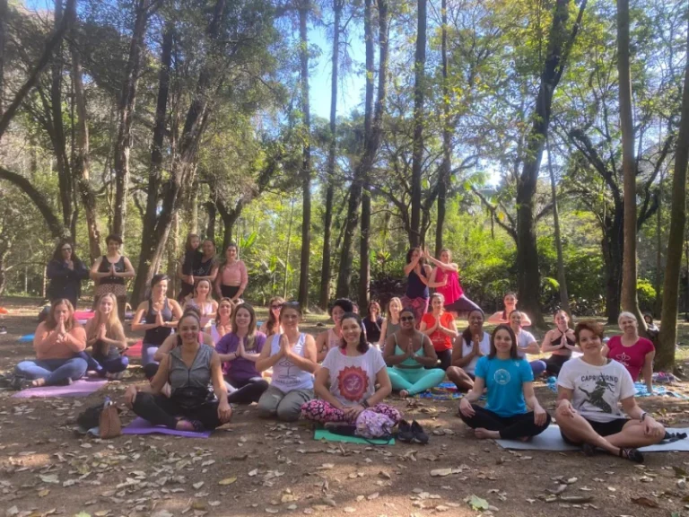 Aula de yoga com posturas que não possuem contra indicações. Uma pessoa cadeirante consegue fazer junto com uma pessoa que não tem necessidades especiais. Um deficiente visual consegue fazer porque a aula é conduzida de uma forma que não precisa ver o professora, mas ouvir atentamente como fazer.