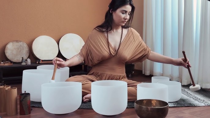 Meditação com Tigelas Tibetanas, de Cristal de Quartzo e Chocalhos